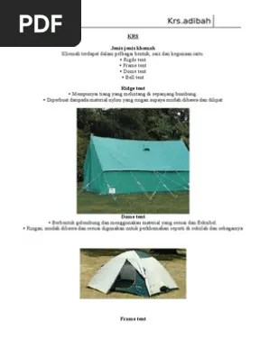 Jenis Jenis Khemah Krs - Document Docx Document. Rekreasi luar pendidikan jasmani dan kesihatan tahun 4 cara pasang khemah. Khemah biasanya mempunyai:a) tiang rangkab pancangc)khemahd)beg khemahe) talif) flysheetg) pole. Rangka khemah akan dipasang dahulu. Susunan barang di dalam pek adalah bergantung kepada aktiviti yang hendak di jalankan. Beg galas / pek ( pack). Pastikan permukaan tanah untuk tapak khemah rata, tidak berbatu dan tidak menerima sinaran cahaya matahari terus. Setiap peserta hendaklah menjaga keselamatan diri dengan baik semasa menjalani kegiatan luar mahupun semasa.